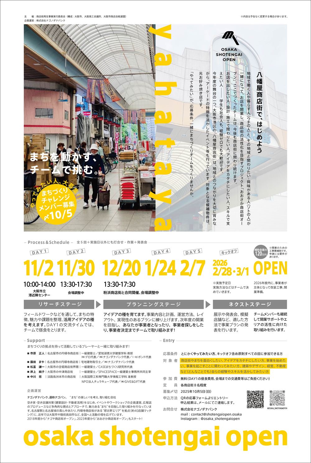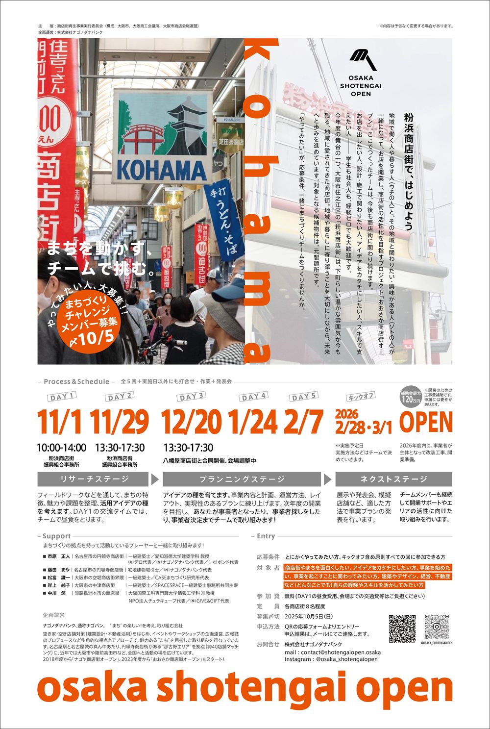 地域で働く人や暮らす人(ウチの人)と、その地域と関わりたい・興味がある人(ソトの人)が一緒になって、お店を開業し、商店街の活性化を目指すプロジェクト「おおさか商店街オープン」の参加者を募集します。